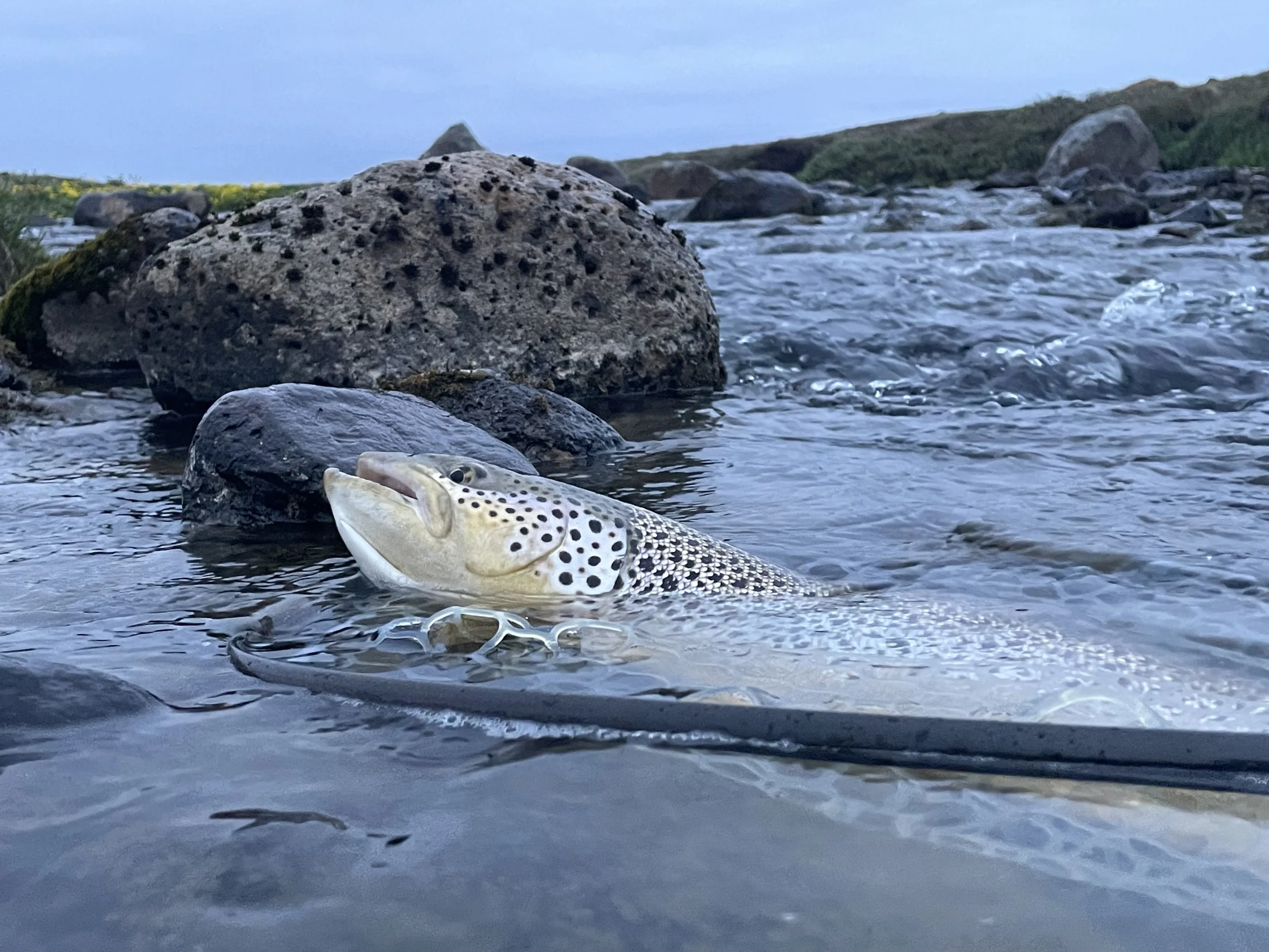 The river holds a healthy stock of wild and native Brown Trout and Arctic Char. With common sizes of browns being in the 2-6 pound range and Chars between 2-4 pounds. The largest fish caught was a 13-pound brown trout. Parts of the river are easily accessible by 4×4 but some sections require extensive hiking to fish and the more anglers are willing to hike the more likely they are to be successful by reaching areas of the river that rarely get fished.